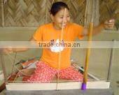 The Naga are an ancient tribal people found in the hills of North Thailand, Northeast India and Northwestern Burma. They have a rich tradition of textile weaving and are renowned for their flamboyant adornments for the body. Textile weaving is the preserve of women. They employ the back-strap loom tension method (sometimes called Indonesian) using handspun cotton and sometimes hemp. After the cloth has been woven, small patches of embroidery are sometimes added using a porcupine needle.