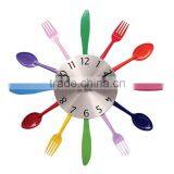 Colorful Metal Kitchen Wall Clock With Fork and Knife