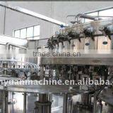 The series equipment is used in producing all kinds of carbonated drink packed with PET bottles.Washing, filling, sealing devices equiped on the same machine. The design of the machine is scientific and reasonable. The appearance is beautiful and the function is complete. Its operation and maintenance is convenient. Its automation is high.The advanced technology from Germany and Italy are employed. The speed of filling is fast and the liquid amount is controlled accurately. The filling device can be stopped automatically when there is no bottle or bottles are damaged. The advanced auto-washing technology is used in the system. Pneumatic valve and damped gears are used for bottle conveying, the noise is Iow and the whole machine runs smoothly. The magnetic torque is used for screw capping. The power of screw capping can be adjusted without steps. The power of the screw capping can ,also be fixed, and the caps will not be damaged, the capping is reliable. Horizon swirl air power caps sorting device is used to avoid damaging the surface of caps, and when there is a shortage of caps in the caps storage tank, an alarm signal will be generated and the caps will be fed automatically. The whole machine is controlled by PLC with touch-screen as the interface between human and machine. The amount of the drinks in the drink tank can be controlled automatically. The filling and capping will be stopped automatically when there is no bottle. When bottles are cramped wrongly or when caps are not available, the machine can be stopped automatically.