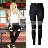 China 2016 Summer Fashion Women Black High Waist Leggings Ladies Knee Holes Pencil Skinny Ripped Jeans Wholesale Price