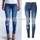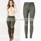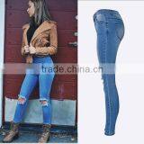 2016 Autumn Fashion Women Knee Holes Denim Jean Ladies High Quality Stretch Skinny Full Length Latest Design Jeans Pants