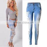 2016 Autumn Fashion Women Pencil Fit Denim Jean Lace Patchwork Low Waist Narrow Bottom Vogue Ladies Jeans Pants