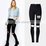 Alibaba China 2016 Summer Fashion Women Black High Waist Leggings Ladies Knee Holes Pencil Skinny Ripped Jeans Wholesale Price