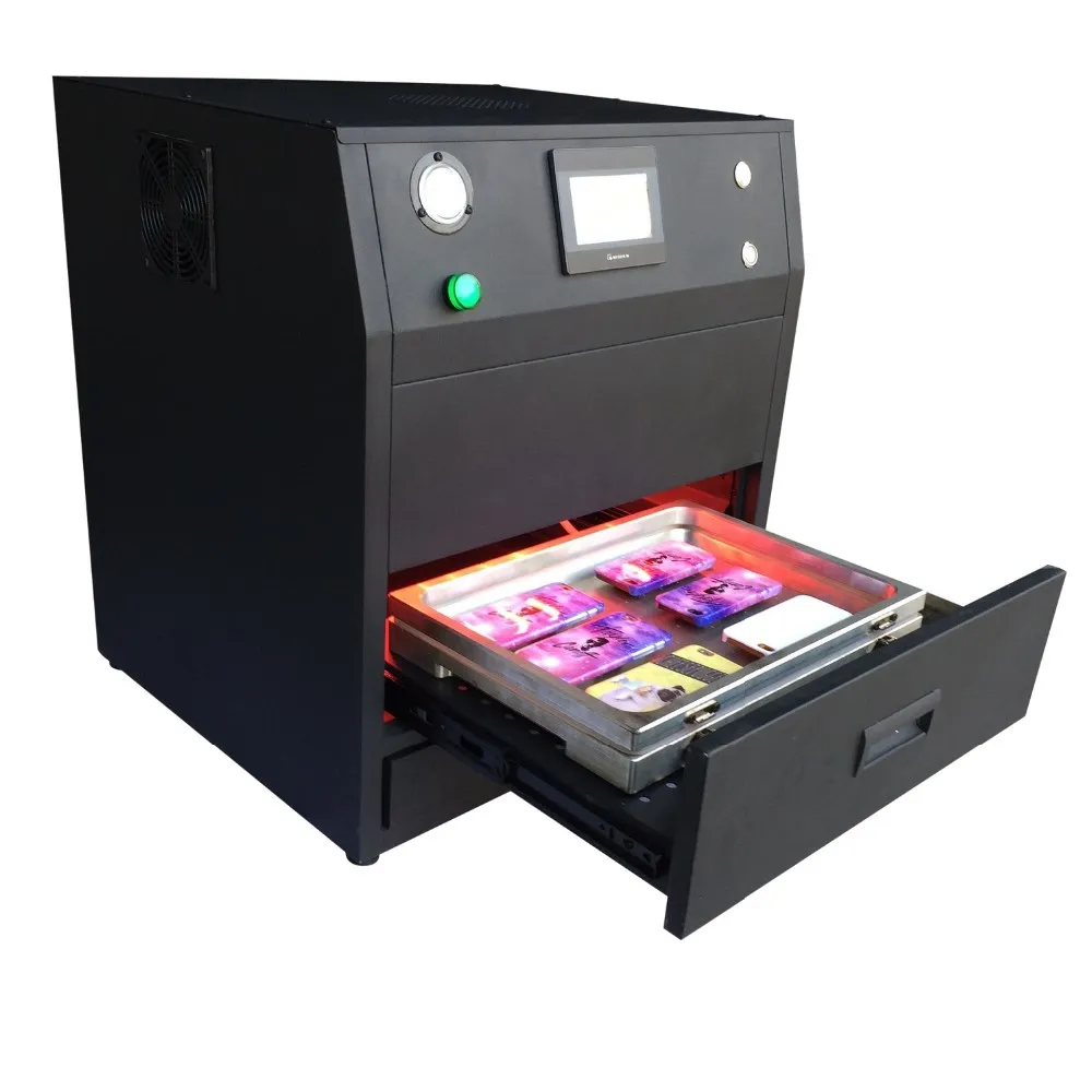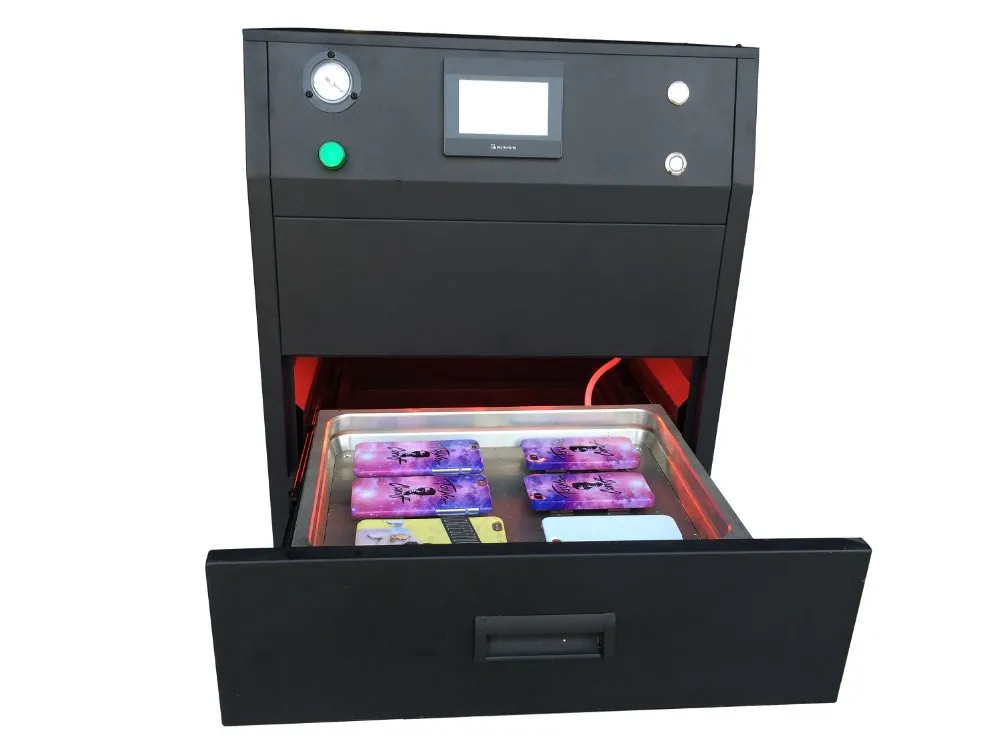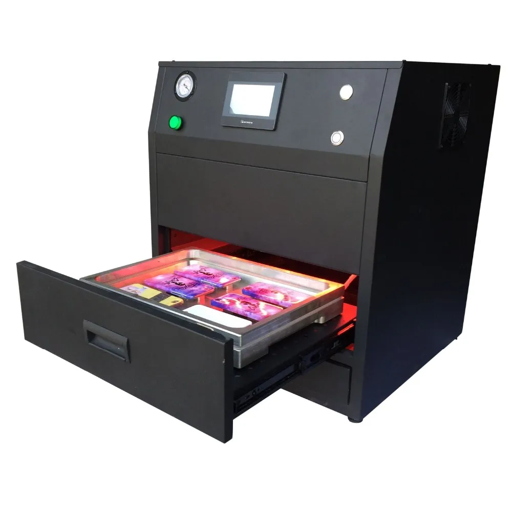 1 to 4 phone cases 3D film vacuum heat press machine, configure high technology: PLC control + Touch screen + 8 Languages display + Infrared heating + Hot air circulation + film preheating + # 7075 aluminum alloy vacuum tray, special apply for phone case, Ipad mini film printing.