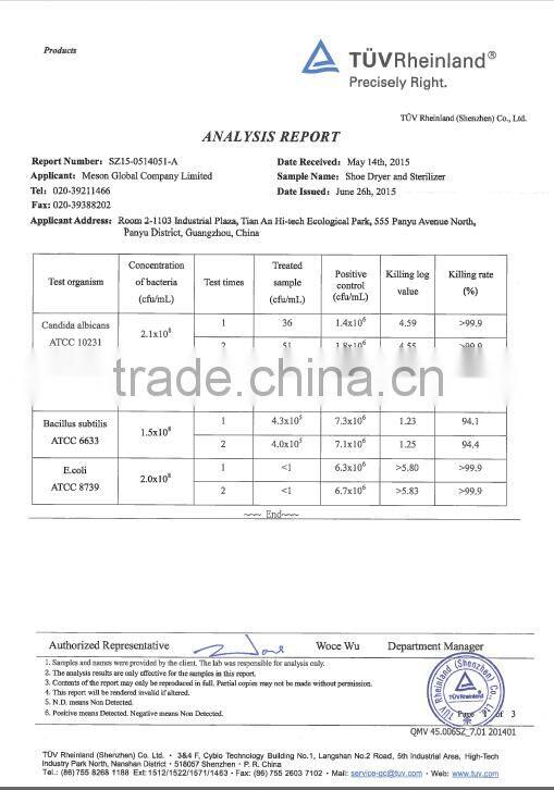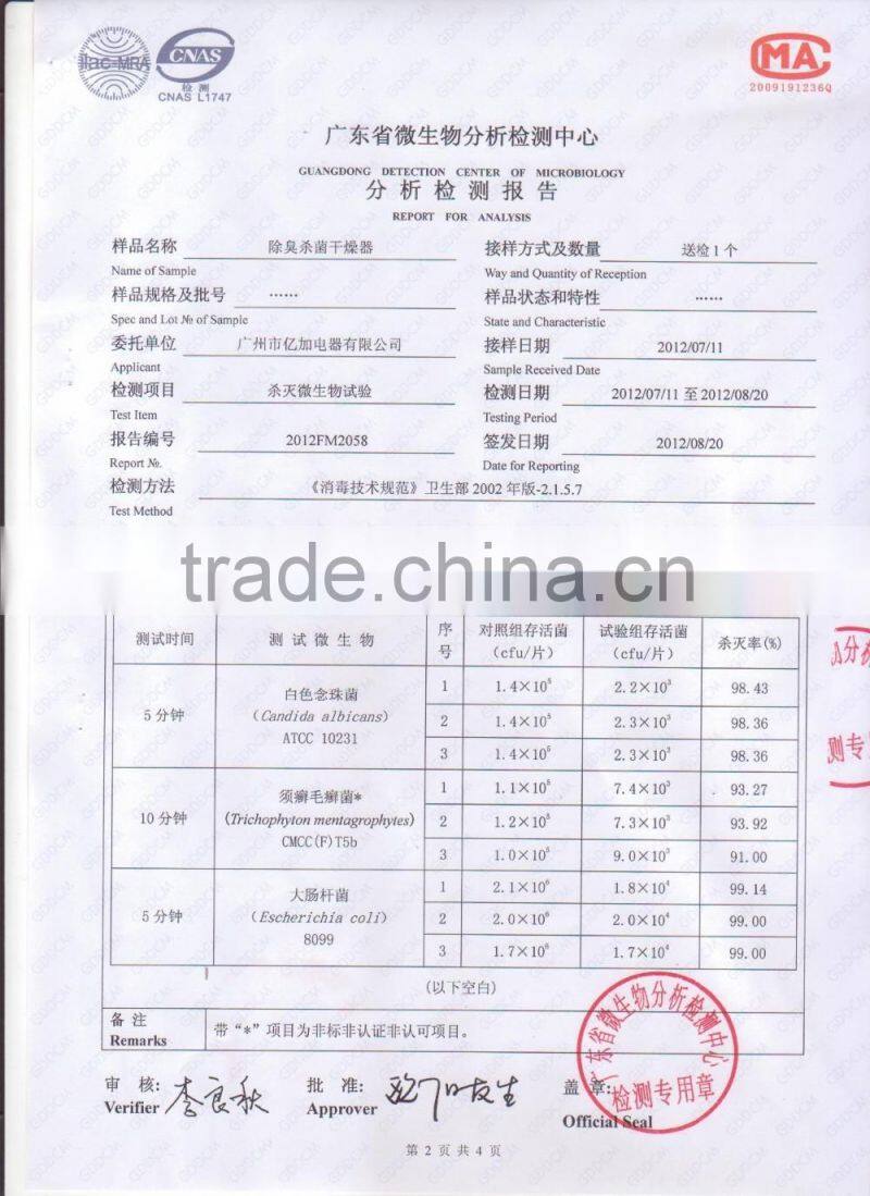 STERYDRY is first a sterilizer who can produce sufficient, stable, controllable and adjustable ozone to sterilize shoes, helmet and gloves etc., to remove odors by killing efficiently various fungus including those of causing dermatophytosis (athlete's foot).