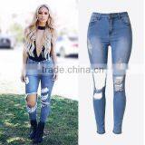 2016 Summer Fashion Women Skinny Baggy Jean Pants Ladies Sexy White Tearing Holes Stretch High Waist Ripped Jeans Pent Style