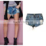 2016 Summer Women High Waist Hot Pants Ladies Decorated Metal Rivet Tassel Fringe Sexy Mini Ripped New Style Fashion Girls Jeans