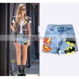 2016 Summer Fashion Women Denim Shorts Ladies Graffiti Printing Punk Style Fringed Hem Breasted High Waist Hip Hop Pants