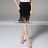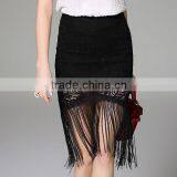 2016 Summer Sexy Ladies Tassel Irregular Hem Midi Skirt Fashion High Waist Slim Black Women Skirts