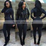 Wholesale Autumn Fashion Women One Piece Jumpsuit Ladies Double-Breasted Long Sleeve Black Skin Tight Jumpsuits For Women 2016