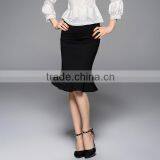 Wholesale 2016 Summer Fashion Ladies Knee Length Pleated Skirts Elegant Women High Waist Ruffle Hem Black Midi Skirt