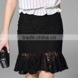 2016 Summer Elegant Sexy Lady See Through Midi Skirts High Waist Ruffle Slim Black Lace Women Skirt