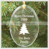 Cheap Glass Engraved Oval Ornament For Christmas Tree Decoration