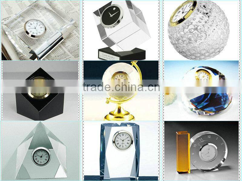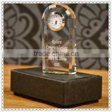 Engraving Glass Block Award Clock For Home Table Decoration