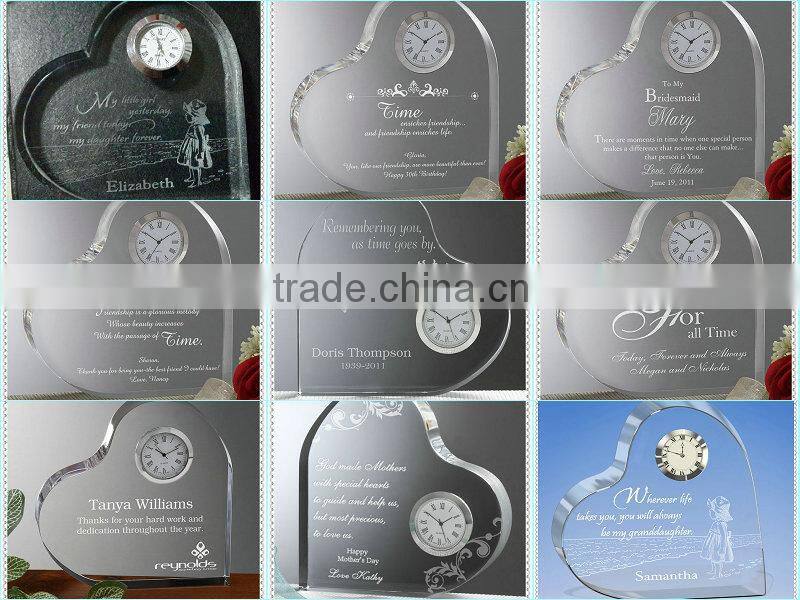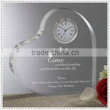 Clear Engraving Crystal Heart Clock For Europen Wedding Gifts