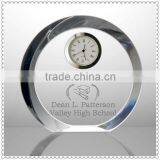 Stand Crystal Round Engraved Clocks For Graduation Souvenir