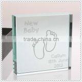 Engraved Jade Glass Footprint Block For Baby Shower Gifts
