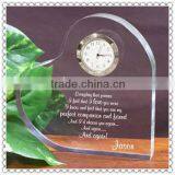 Clear Crystal Heart Engraved Clock For Wedding Gifts