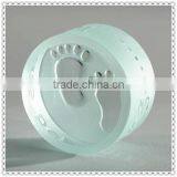 Etched Footprint Round Glass Block For Baby Baptism Gifts
