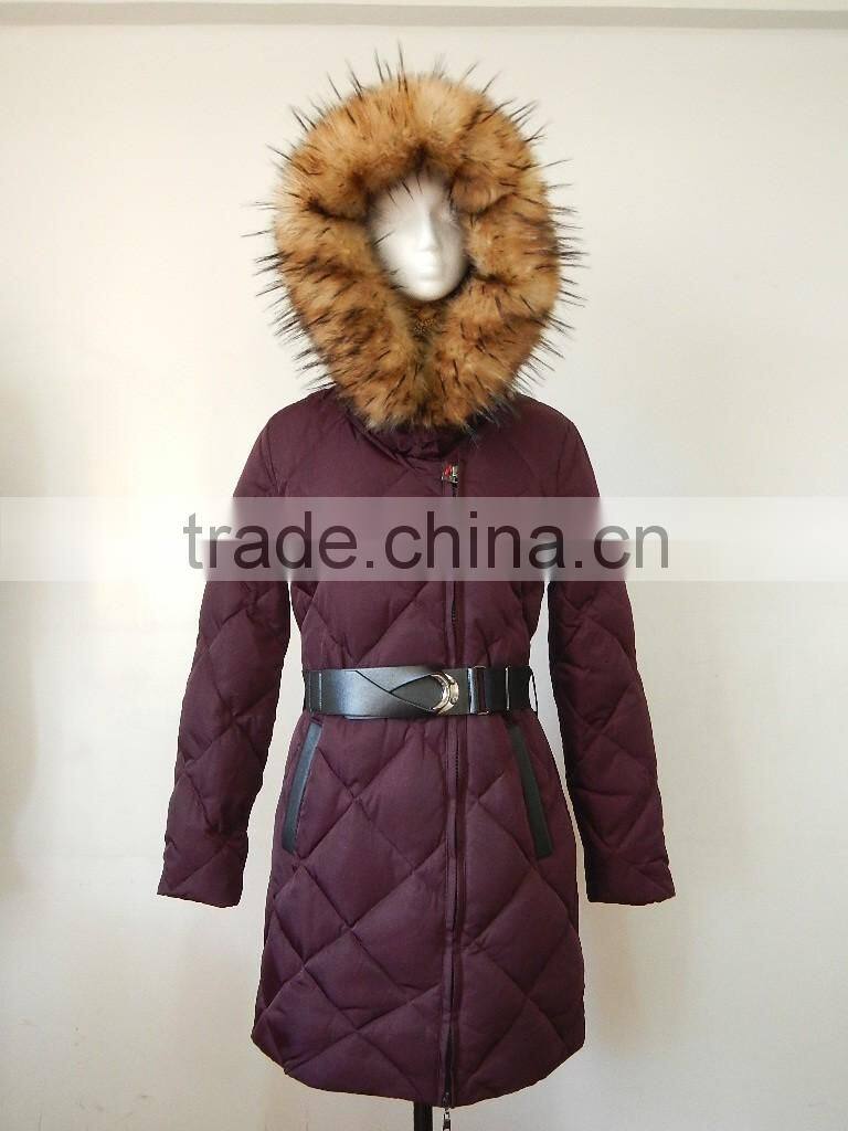 Classic design down coat with faux fur at hood zipper detached, simple and puffy, price without waist belt
