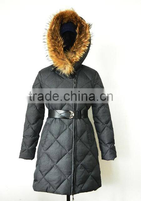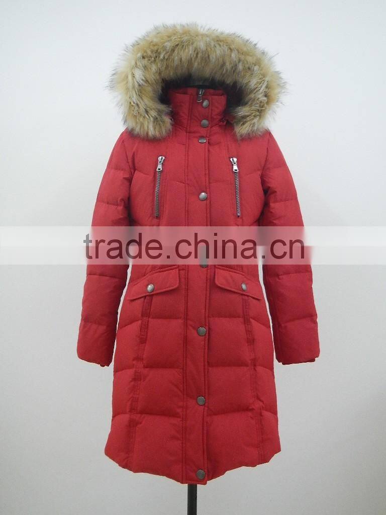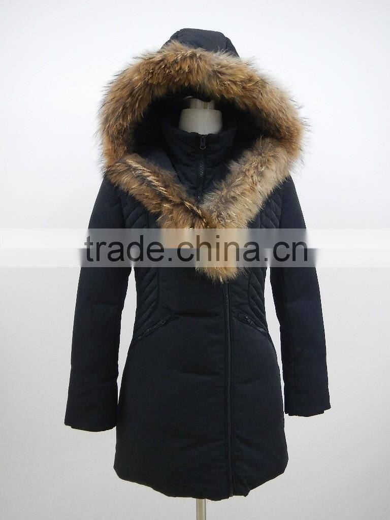 Long Hair Faux Fur Hood Puffer Quilted Ladies Down Coats