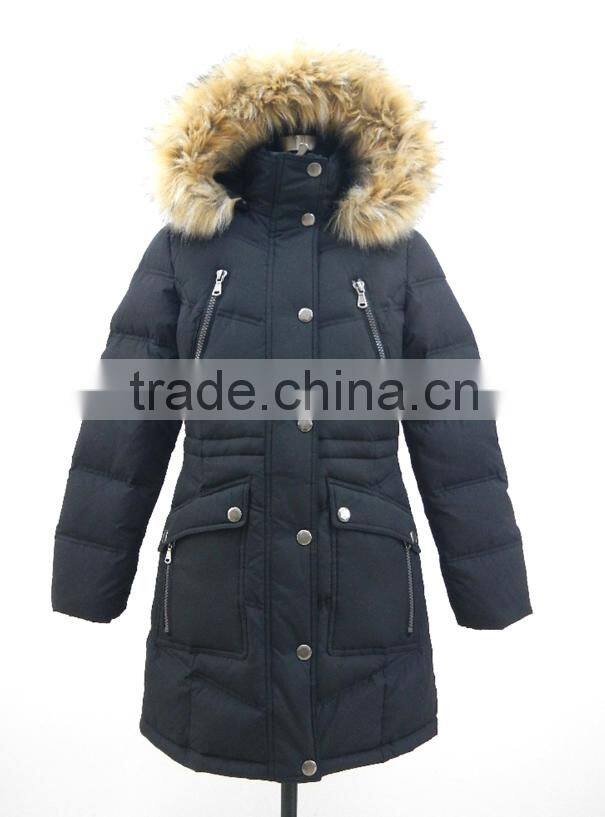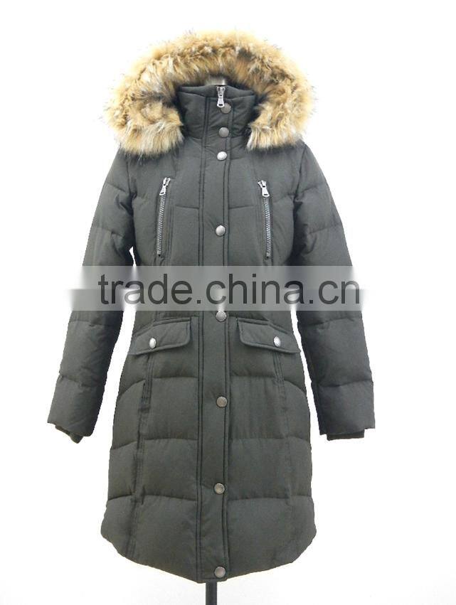 Women Winter Knee Length Duck Down Feather Fill Real Fur Trim Coat