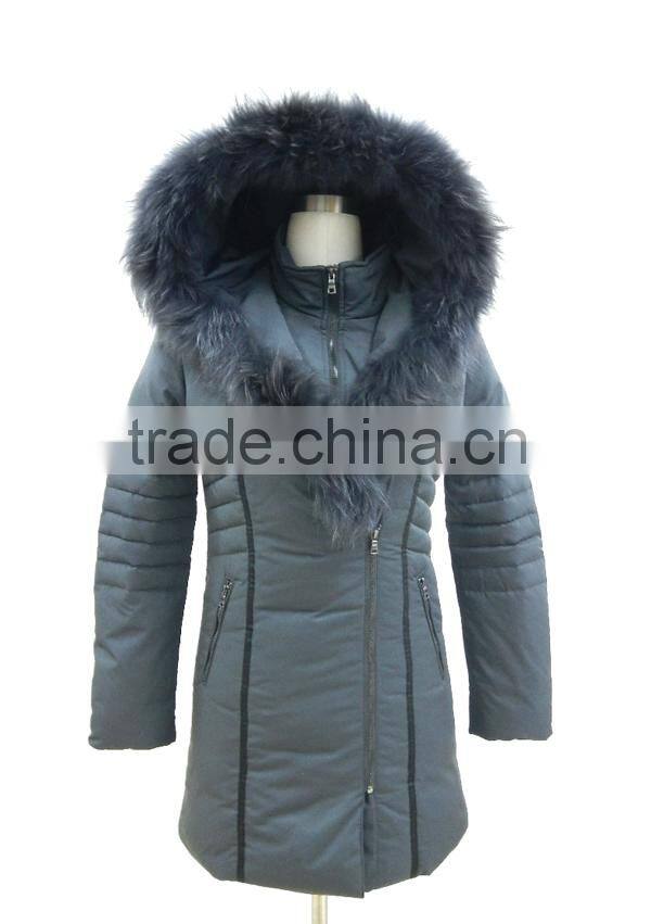 Real Raccoon Fur Collar Polyester Memory Twill Fabric Faux Down Fill Best Winter Jackets