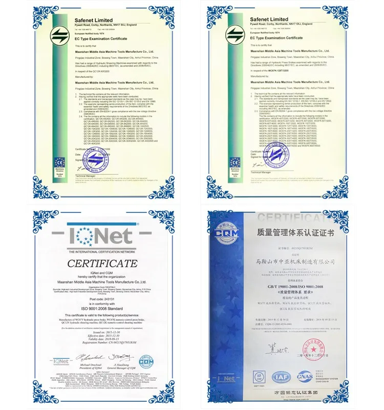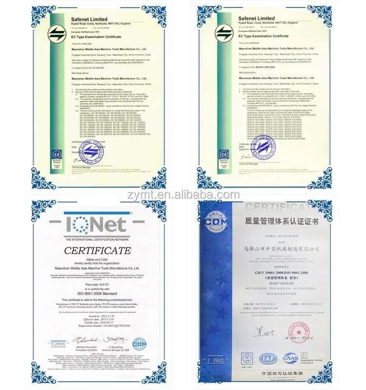 All the ZYMT products are manufactured with the Chinese AAA level good standardization and accredited for the ISO 9001:2008 and CE Certification is optional. In the past years ZYMT has progressed to become a major exporter of sheet metal machineries to the world markets with customers located in all the machine tools consuming countries.