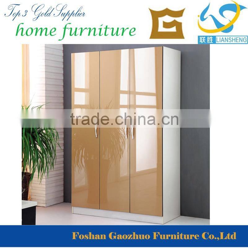 2016 Popular small size high gloss 3 door wooden bedroom wardrobe