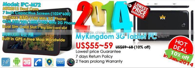 BHNKT88 New Product 7 Inch Touch Screen With Dual Core Dual Sim Bluetooth GPS Built in 2G Tablet PC WIFIUS$ 52 - 58MOQ: 10 Pieces