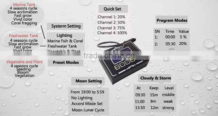 4 Channels offer freely program mode with 8 time points, easily to express your special demands of intenstity for different stage of corals.