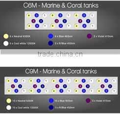 As we test, the 6500K simulates the morning and evening sun; the 12000K is the noon. 410nm and 450nm are night. Combined with 465nm, the sun lighting in 10-20 meter sea is best expressed in your 0.6 meter tank! Of course, a smart programmable controller is best choice unless you can endure a manual way.