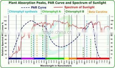 Photosynthesis is essential for most of the plants growth, this is the only reason why we attach much importance to programmable led grow light, but not all types of the lighting are needed. Actually, to have them survive longer and grow perfect, the specific range of the spectrum are essential, that is the ChlorophyII A and ChlorophyII B (as the picture showed on the left). There are two of the most important ChlorophyII for the plants.
