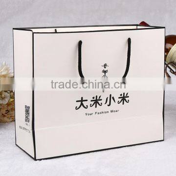 High quality white kraft paper bag with black logo clothing paper bag |