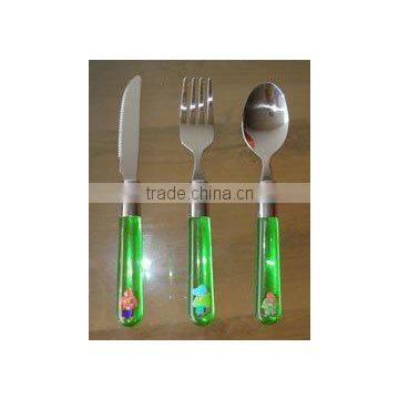 stainless steel cutlery with plastic handle, color&logo can be done in customer's design.stainless flatware with plastic handle #EH0058