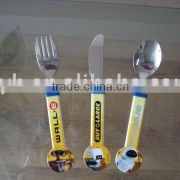 kids cutlery with plasitc handle, stainless steel 18/0,18/8,18/10,plastic handle PP,ABS LOGO allowedName: kids cutlery with plastic handle