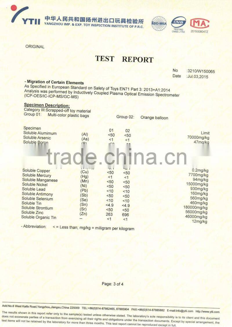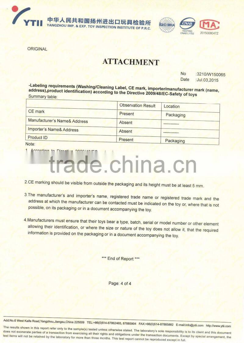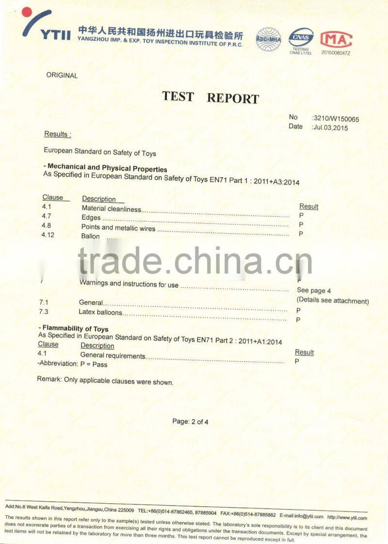 We are concerned our good quality. By now, we have got the ISO9001-2008certificate,and all the goods have passed the EN71,ASTM,Nitrosamines,GB6675test.