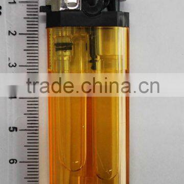 Lighter Size: 78.7*25.5*12.2mm , flint gas lighter of tansparent body or solid color with sticker.