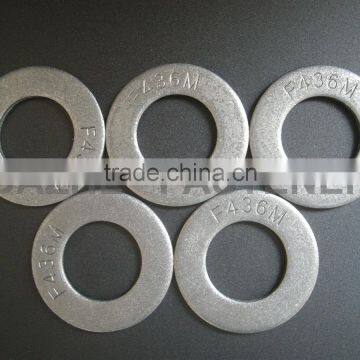 F436 flat washer hardened to C-38-45 and are stocked in plain or mechanical galvanized (ASTM B695 Class 55) and Hot Dipped Galvanized (ASTM A-153 Class C) finishes for immediate shipment