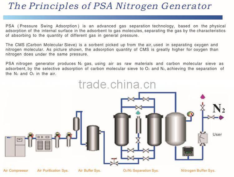 The 99.9995% nitrogen gas is produced in one-time procedure without purification devices.