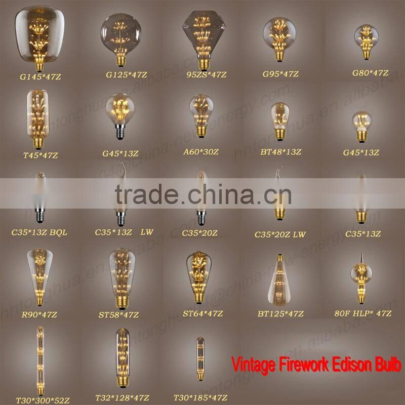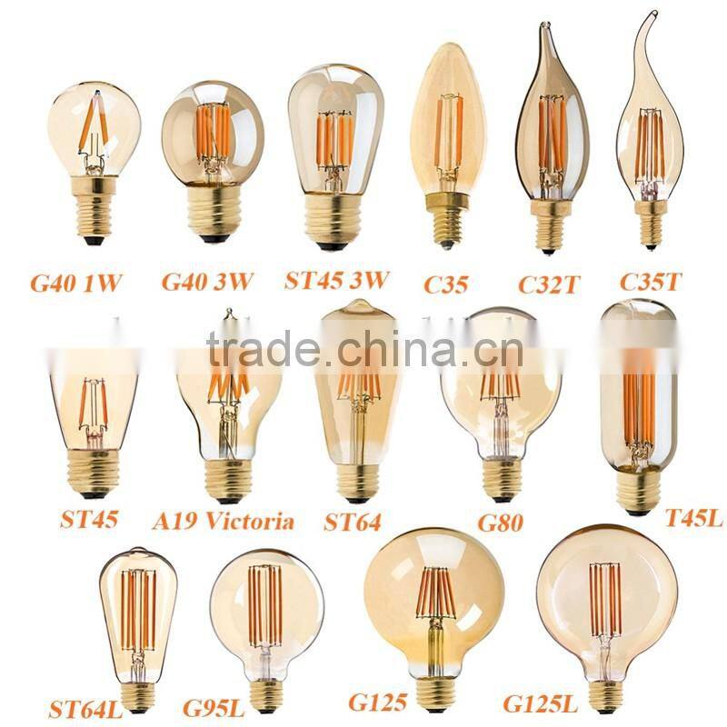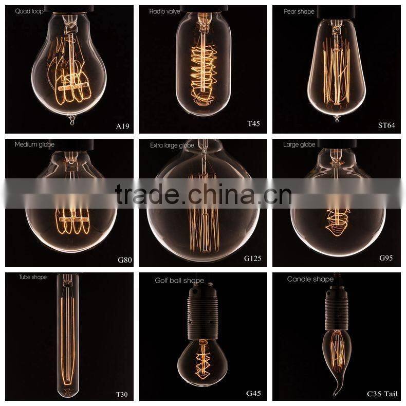 A19,A21,A23,ST58,ST64,T8,T9,T10,T38,T45,C35,FC35,G80,G95,G125 of edison antique bulbs series and LED edison bulbs with various of bulb accessories are our speciality, have been favored by customers in US, Europe, Australia and other countries in the world.