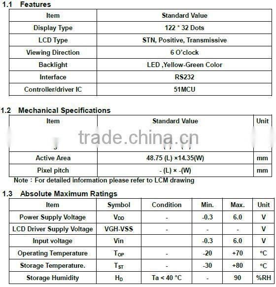 1. Standard size: 122x32, 128x64, 132x64,160x32,160x128, 160x160,192x64, 240x64, 240x128,