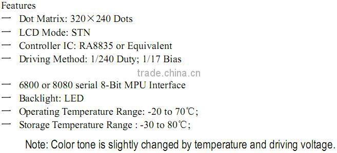 We mainly supply LCD TFT display panel and module from 1.44 to 10.2 inches and Mono STN LCD module.We provide accessories such as touch panel, driver board, connectors as package.
