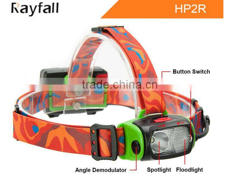 1.Newly designed lightweight plastic headlamp,CREE white led-up to 200 Lumens.Addtional 5mm RED LEDs for night version & Warning.