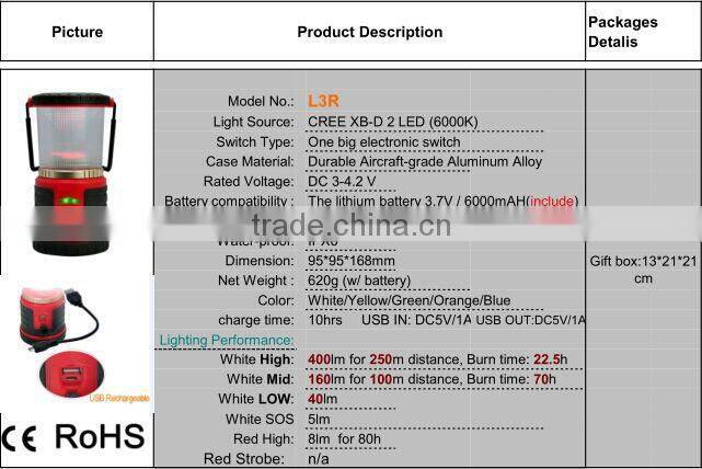 2.Camping lantern L3R specfications :