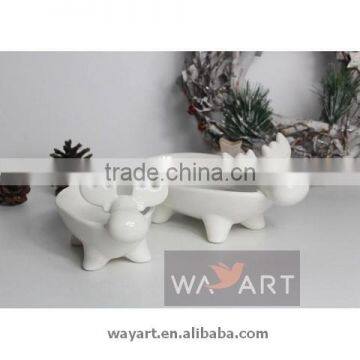 White Ceramic Plates Christmas Reindeer Plates for Home Decoration