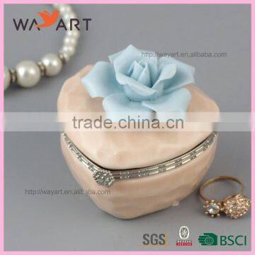 | Item Name | Wholesale Blue Flower Heart Shaped Ceramic Cheap Jewelry Box |