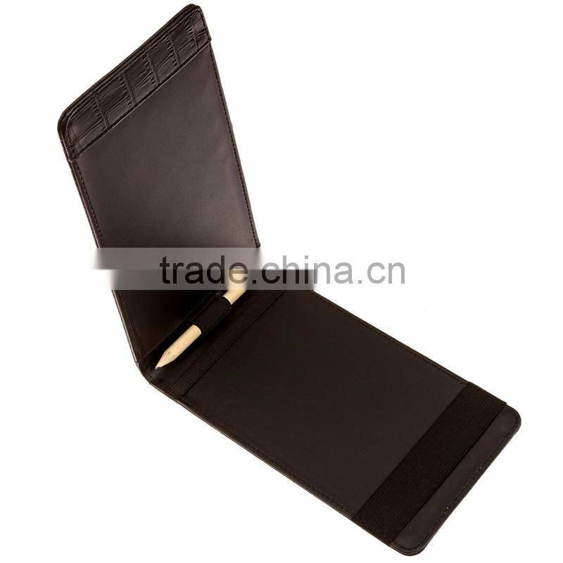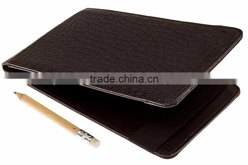 This handmade leather book and scorecard holder features the look and feel of luxurious alligator leather.