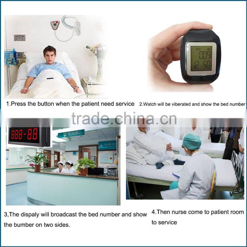 2.Nurse's watch will vibrate with bed number, at the same time the display panel at the counter will broadcast the bed number.