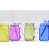 Colored Glass Jars Wholesale With Silver Lid and Straw